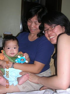 Last Sunday we invited the Wongs family for a simple brunch at our place. Ethan seemed to enjoy the company especially when Aunt Roslyn or Joanne carried and played with him...He got excited with their visit that he almost forgot about his milk... he didn't want to drink his milk when I tried to feed him...not until the Wongs have left ...such a playful baby..hehe..